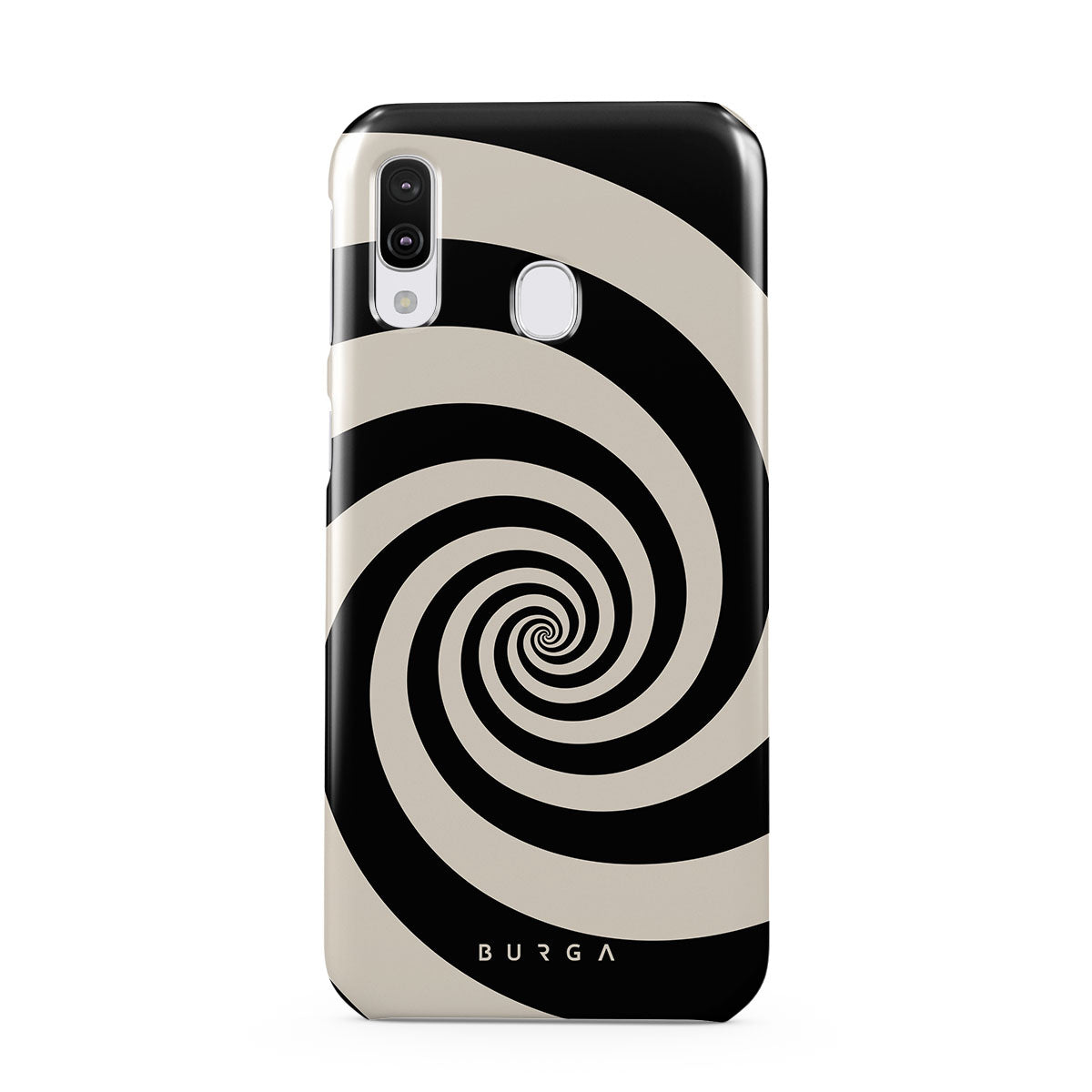 Kenmerken van dit design: zwart-witte spiraal, hypnotisch patroon