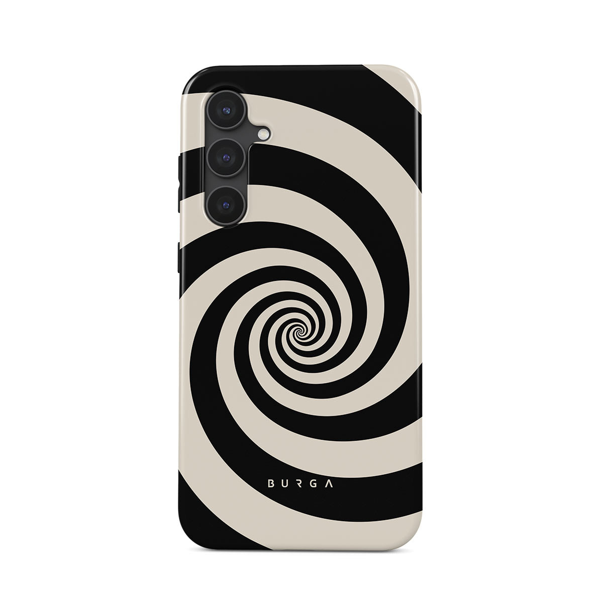 Kenmerken van dit design: zwart-witte spiraal, hypnotisch patroon
