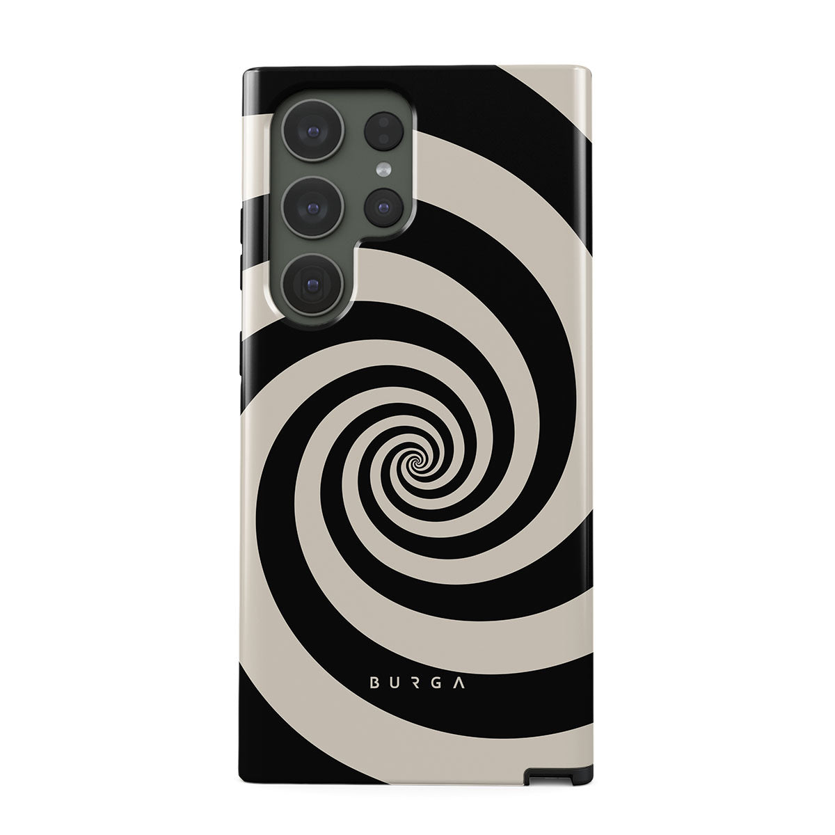 Kenmerken van dit design: zwart-witte spiraal, hypnotisch patroon
