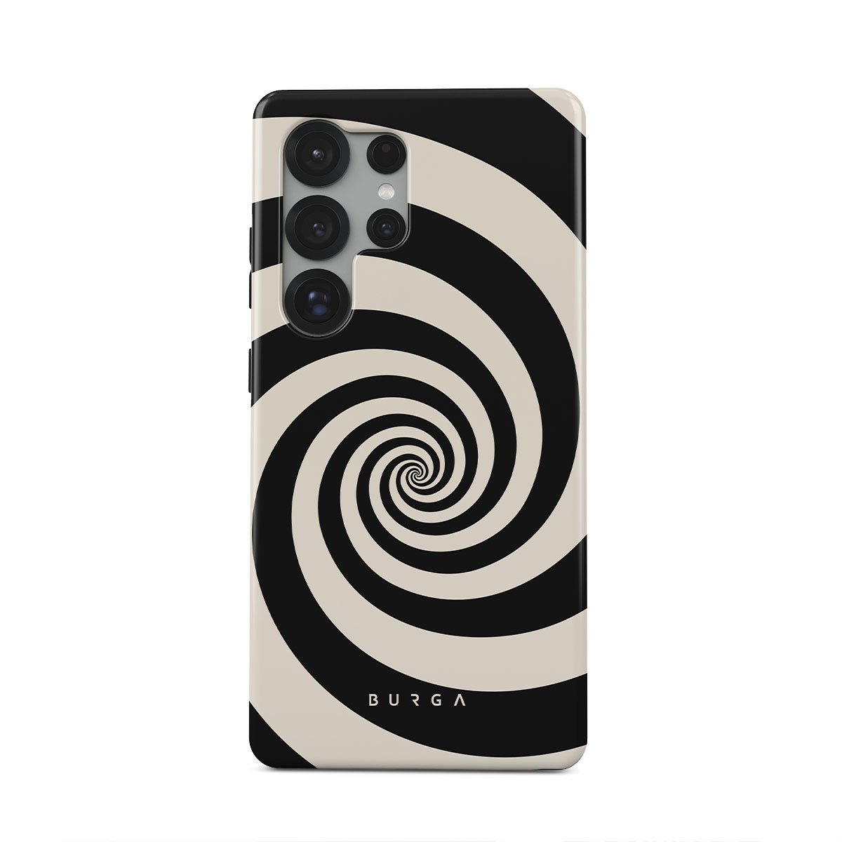 Kenmerken van dit design: zwart-witte spiraal, hypnotisch patroon