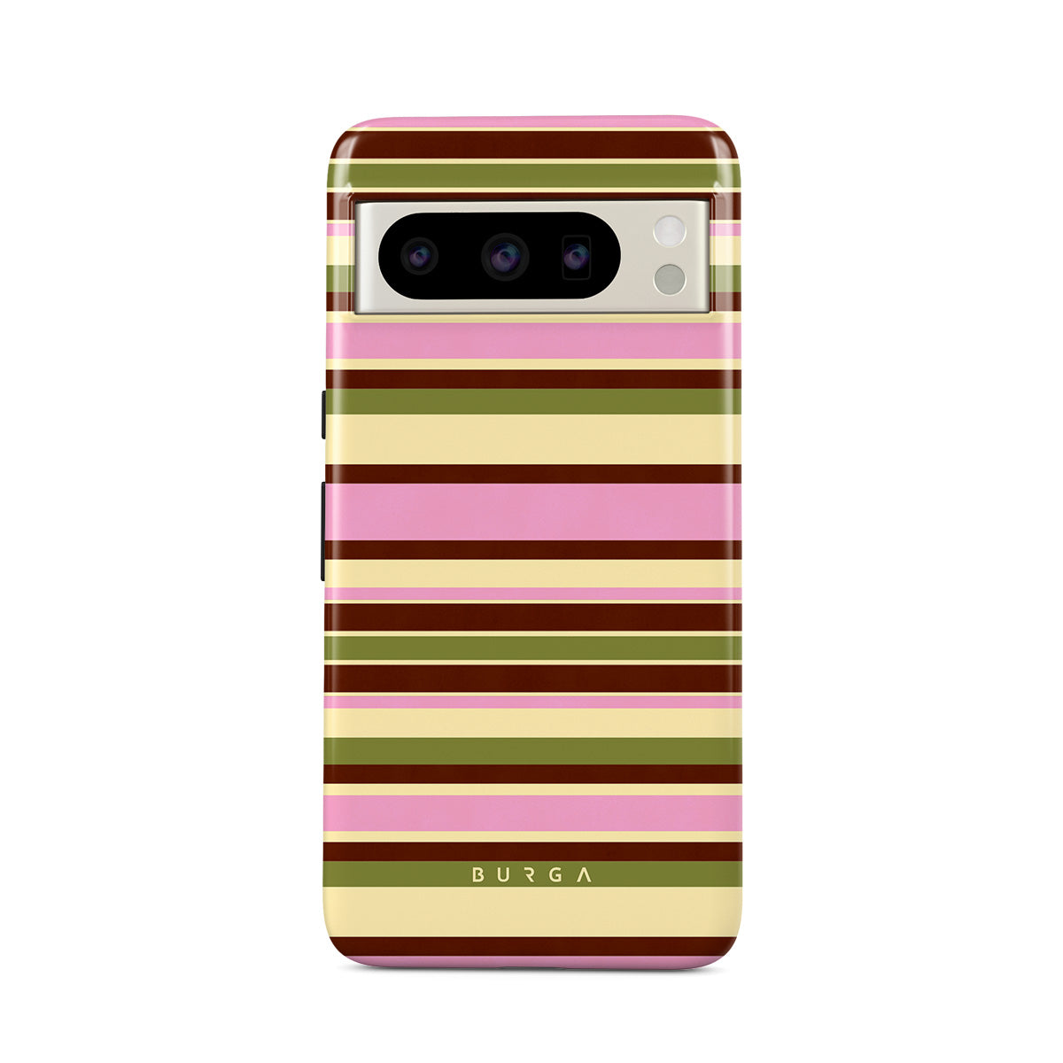 Kenmerken van dit design: pastelstrepen in roze, geel en groen, zomer patroon