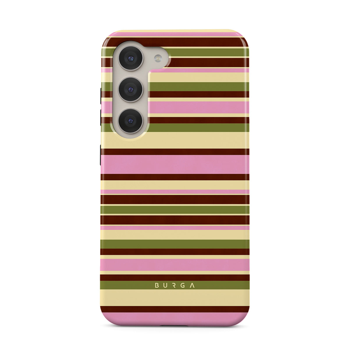 Kenmerken van dit design: pastelstrepen in roze, geel en groen, zomer patroon