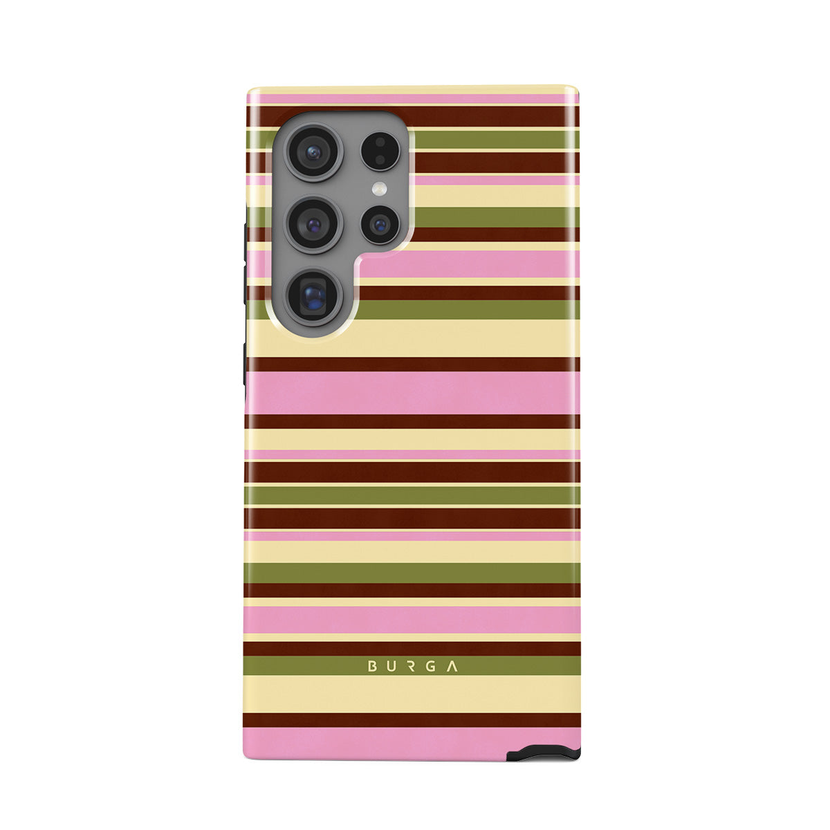 Kenmerken van dit design: pastelstrepen in roze, geel en groen, zomer patroon