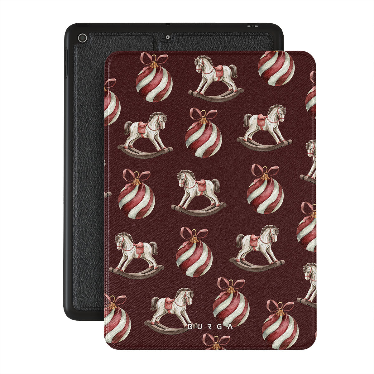 Dit ontwerp heeft: schommelpaarden, kerstballen, rood, kerst ontwerp
