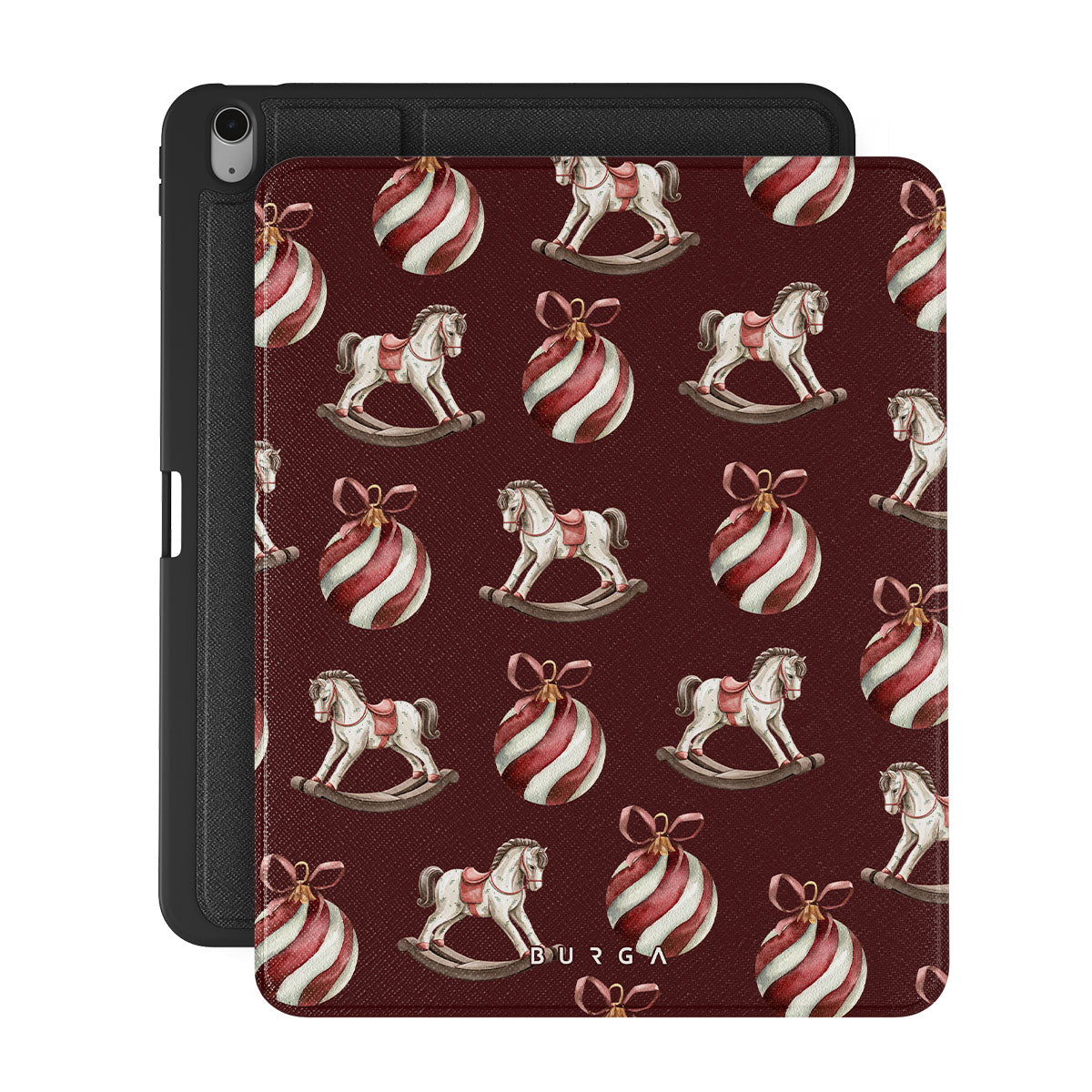 Dit ontwerp heeft: schommelpaarden, kerstballen, rood, kerst ontwerp