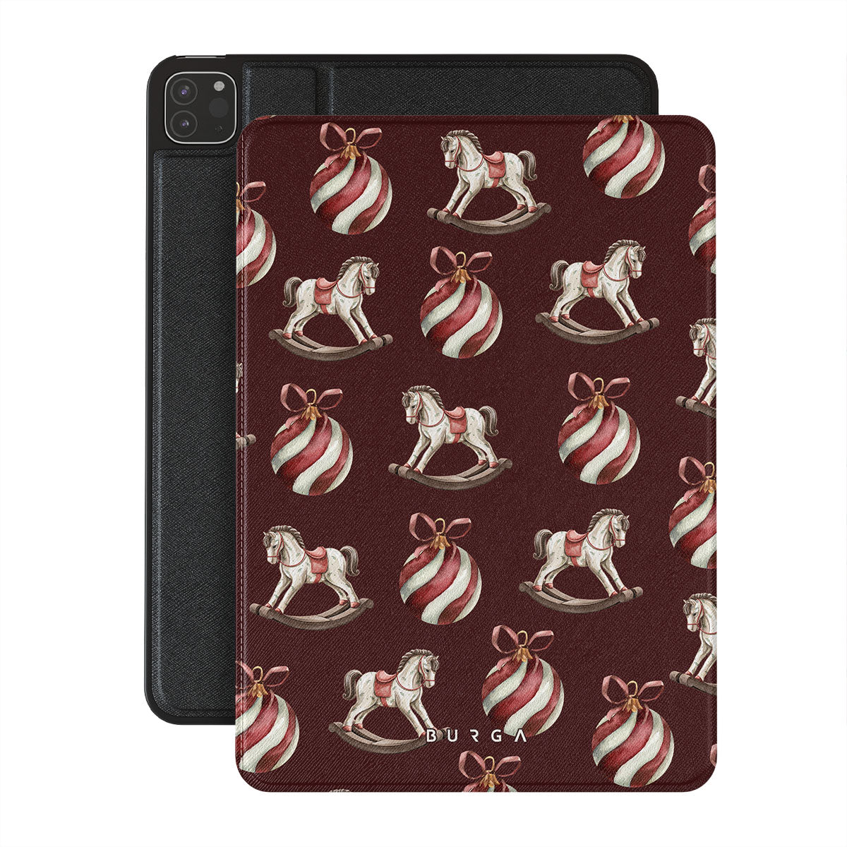 Dit ontwerp heeft: schommelpaarden, kerstballen, rood, kerst ontwerp