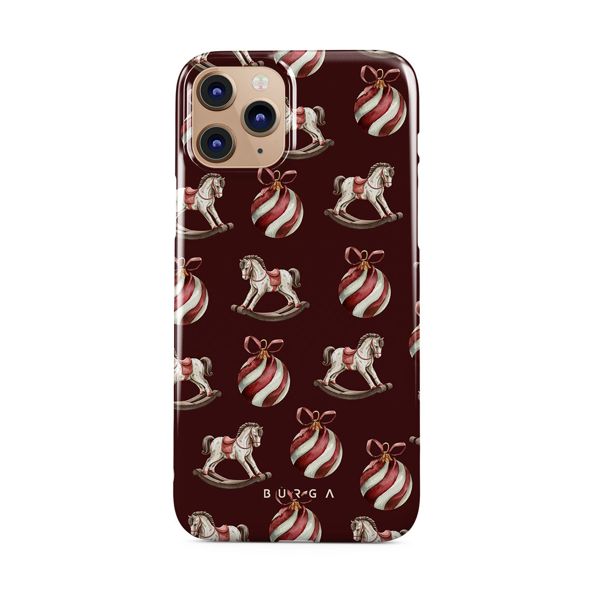 Dit ontwerp heeft: schommelpaarden, kerstballen, rood, kerst ontwerp