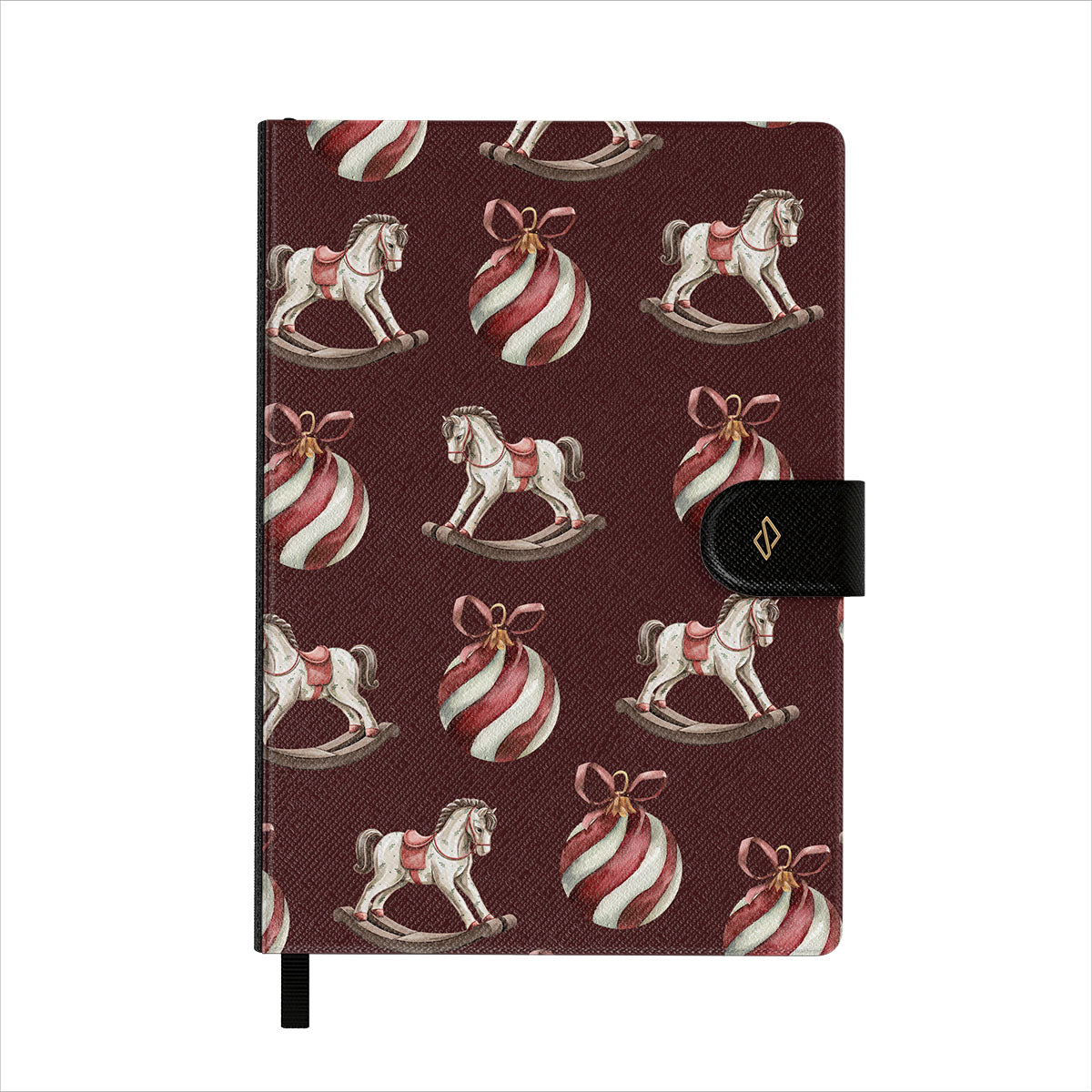Dit ontwerp heeft: schommelpaarden, kerstballen, rood, kerst ontwerp