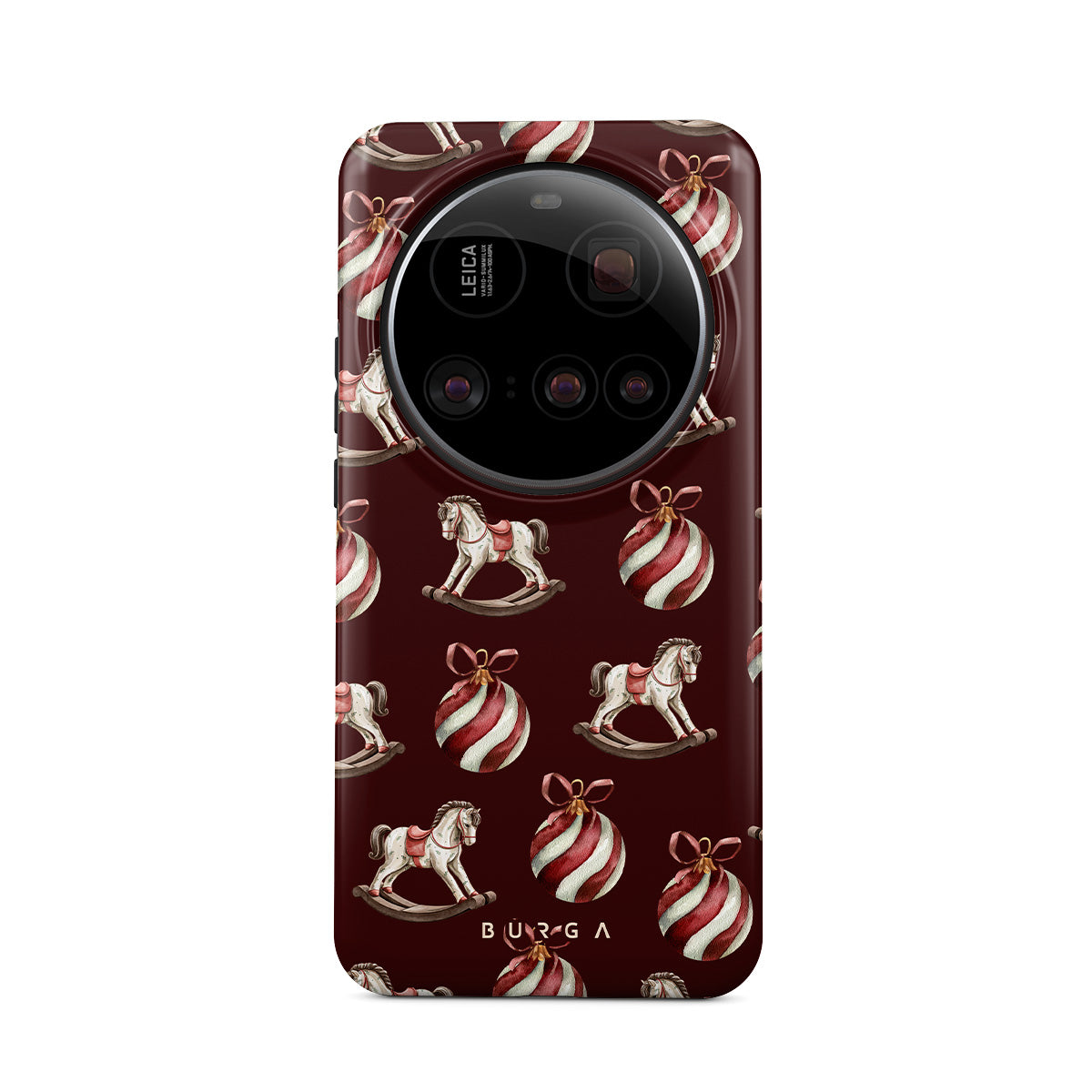 Dit ontwerp heeft: schommelpaarden, kerstballen, rood, kerst ontwerp