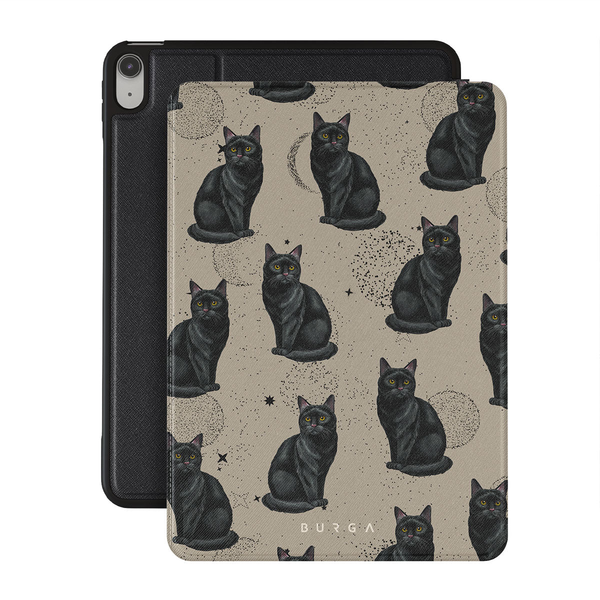 Kenmerken van dit design: zwarte katten, mystieke symbolen.