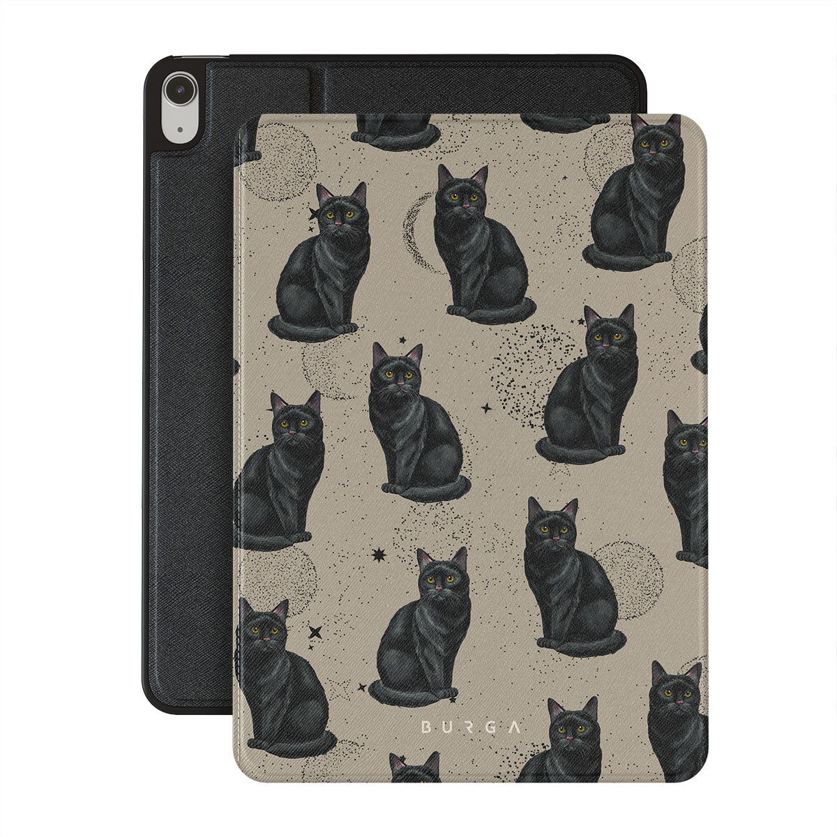 Kenmerken van dit design: zwarte katten, mystieke symbolen.