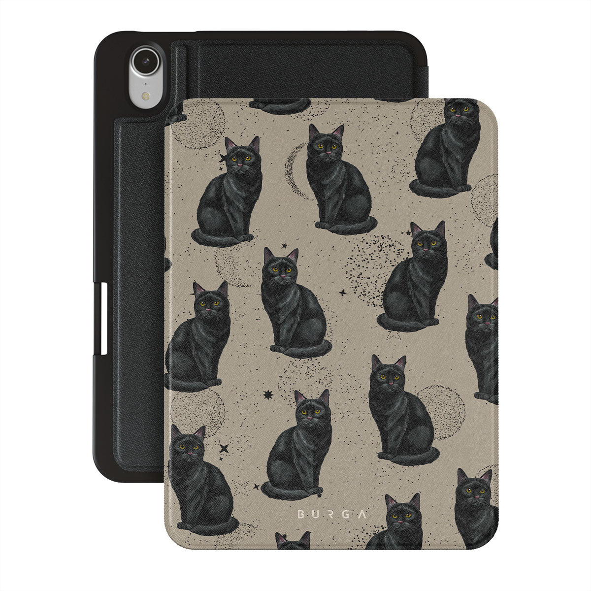 Kenmerken van dit design: zwarte katten, mystieke symbolen.