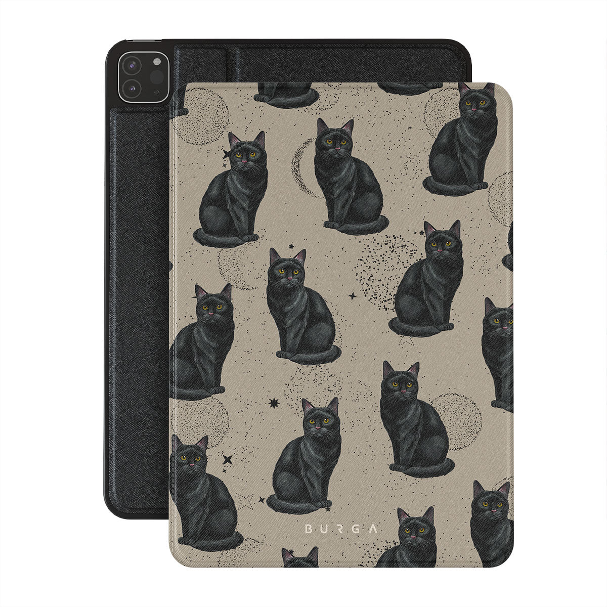 Kenmerken van dit design: zwarte katten, mystieke symbolen.