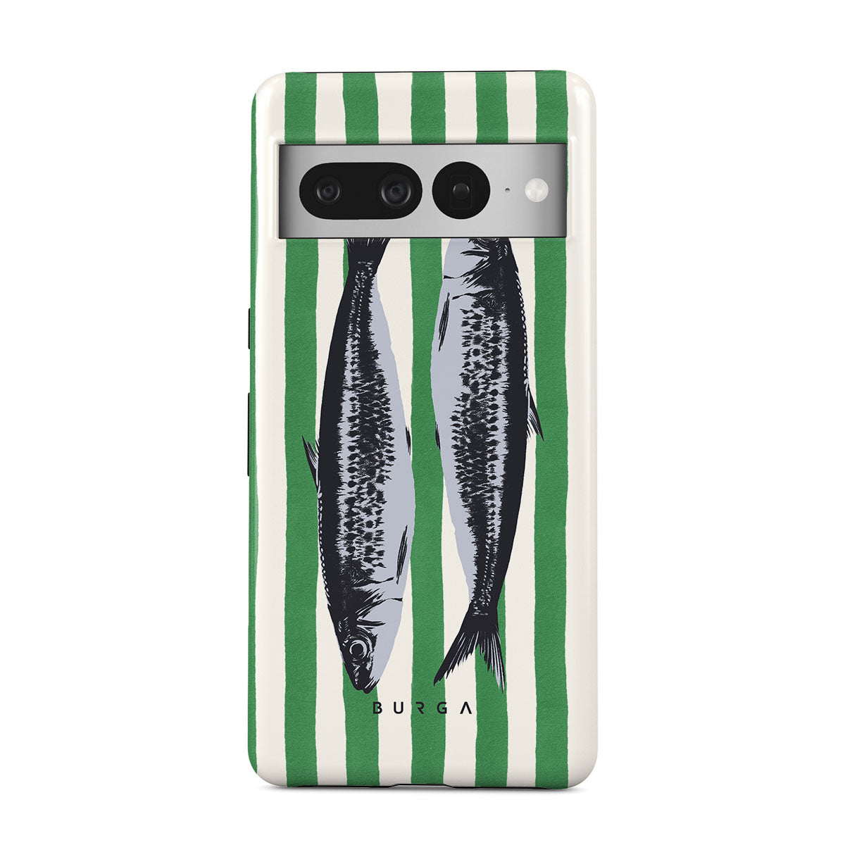 Kenmerken van dit design: Sardines, groene strepen, oceaanmotieven.