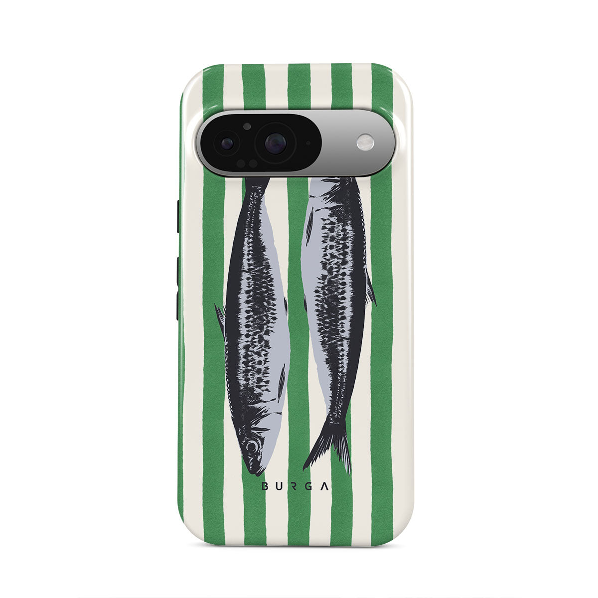 Kenmerken van dit design: Sardines, groene strepen, oceaanmotieven.