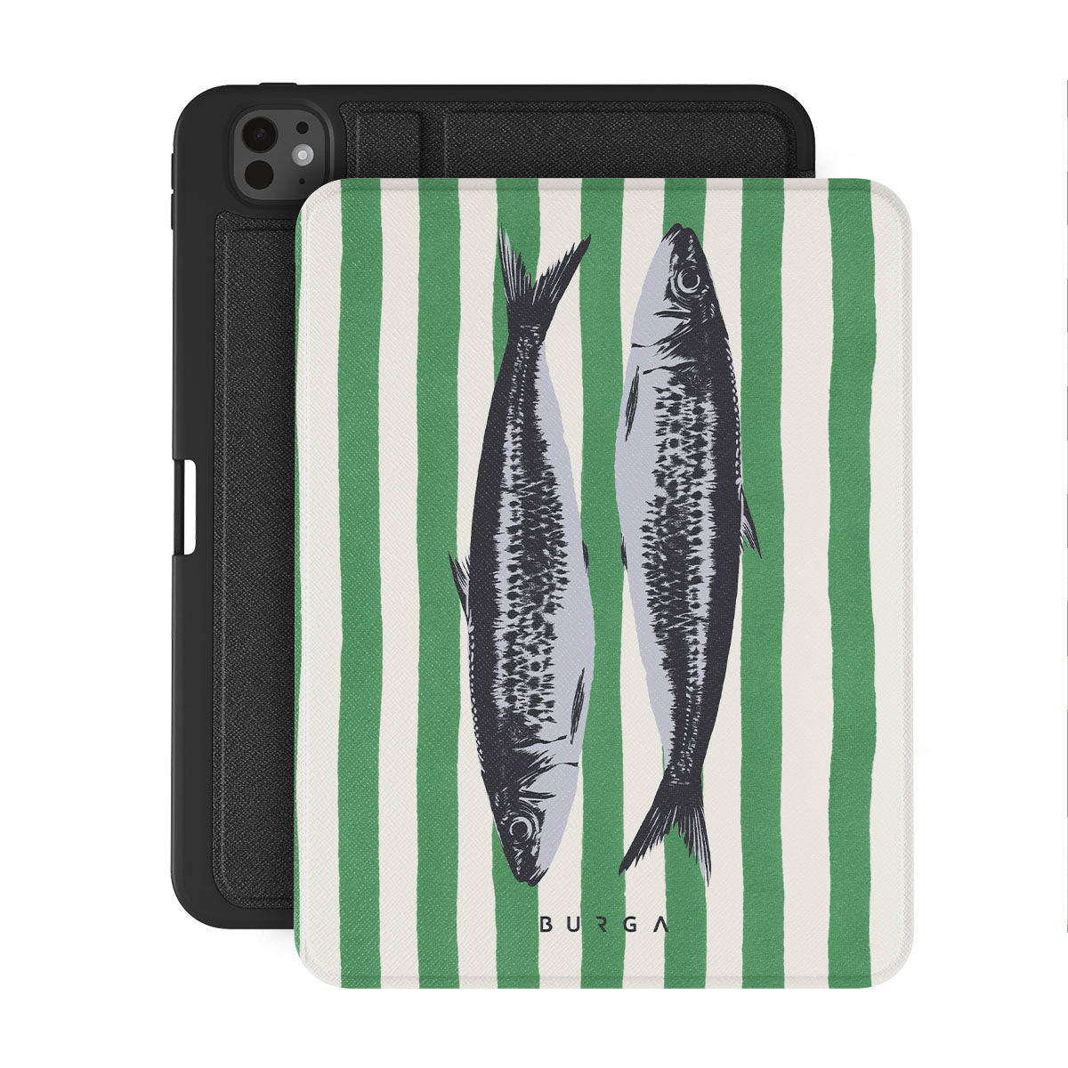 Kenmerken van dit design: Sardines, groene strepen, oceaanmotieven.