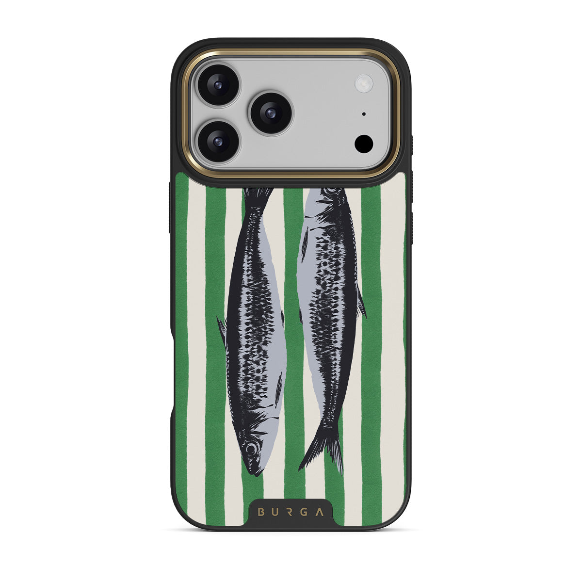Kenmerken van dit design: Sardines, groene strepen, oceaanmotieven.