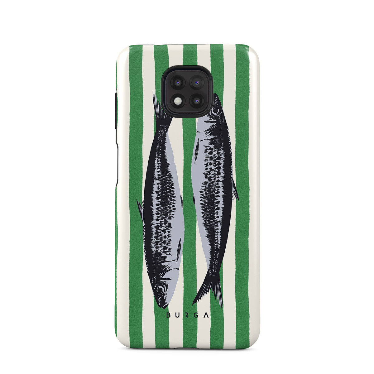 Kenmerken van dit design: Sardines, groene strepen, oceaanmotieven.