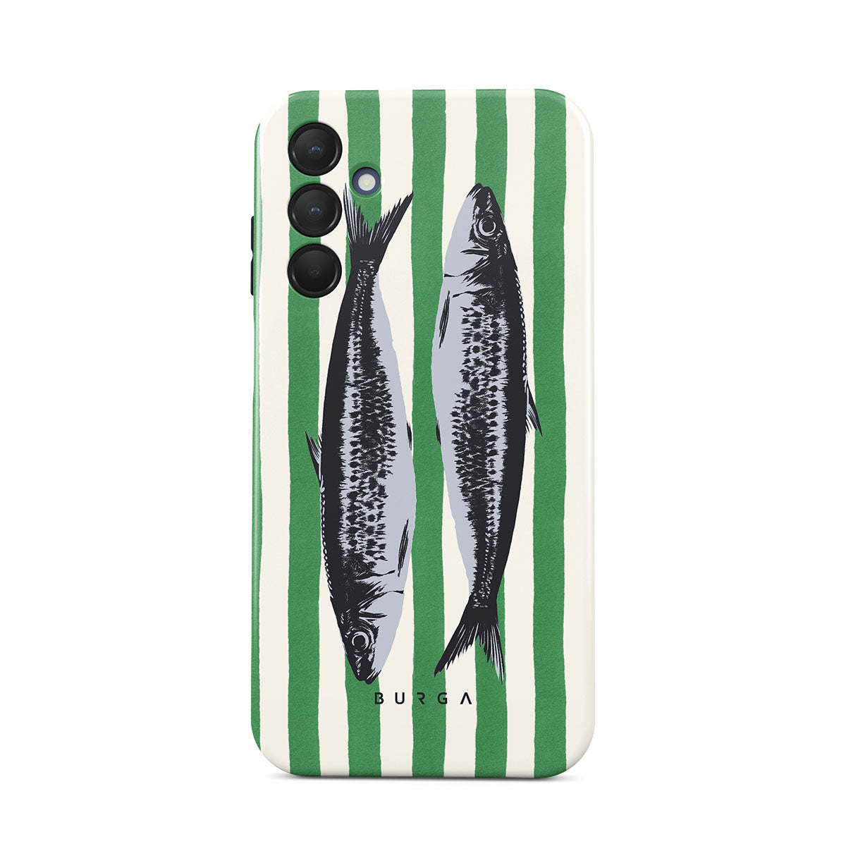 Kenmerken van dit design: Sardines, groene strepen, oceaanmotieven.