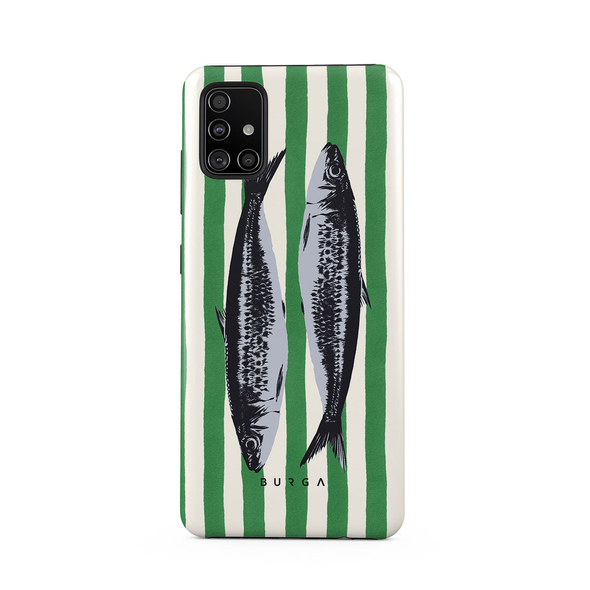 Kenmerken van dit design: Sardines, groene strepen, oceaanmotieven.