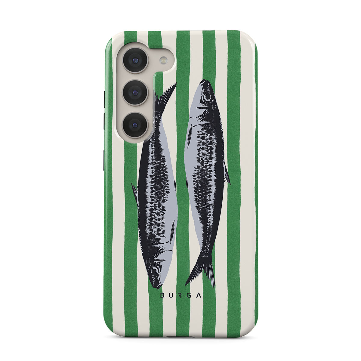 Kenmerken van dit design: Sardines, groene strepen, oceaanmotieven.