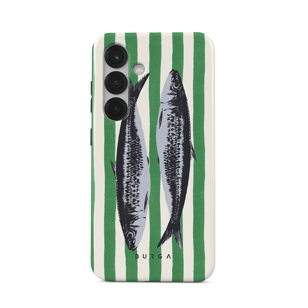 Kenmerken van dit design: Sardines, groene strepen, oceaanmotieven.