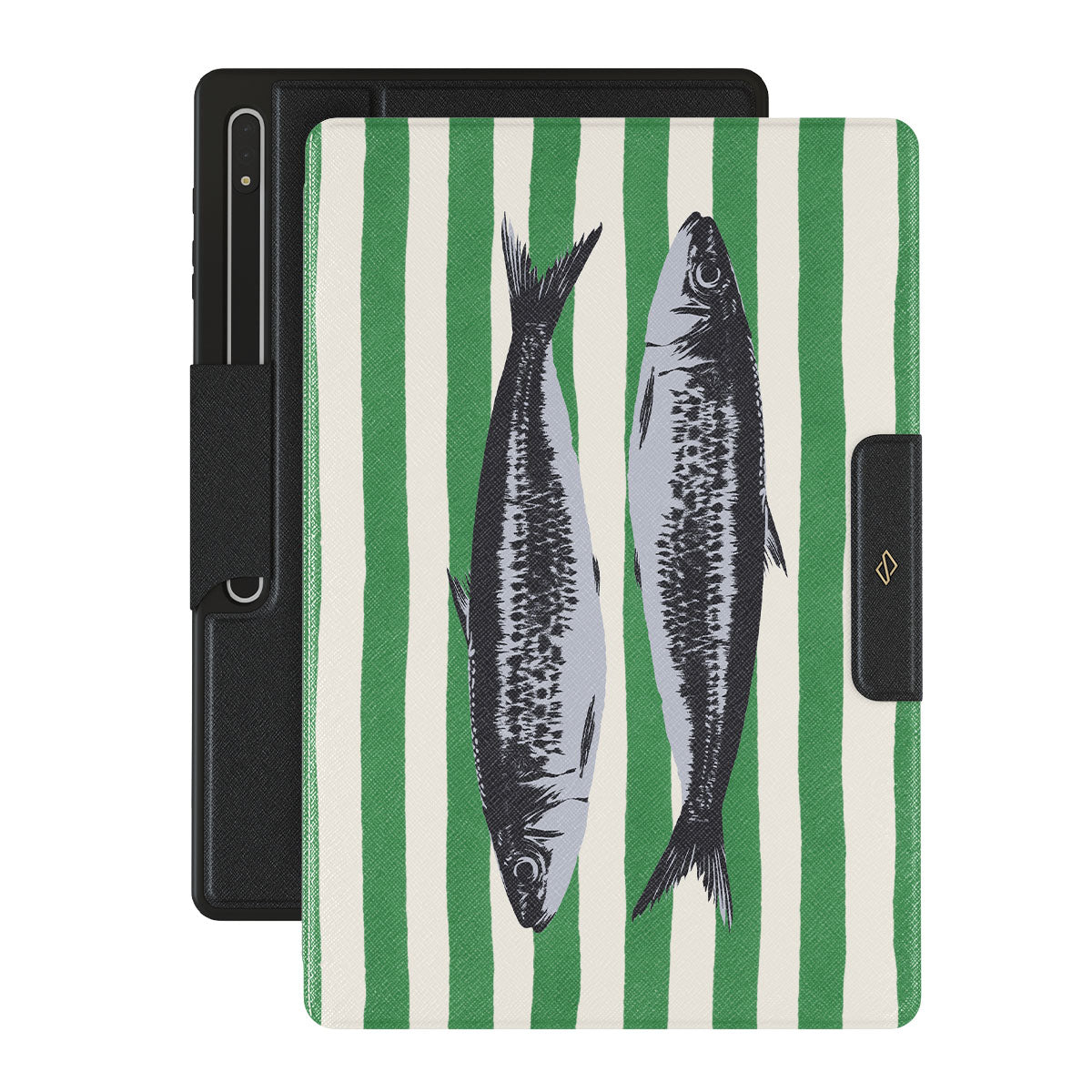 Kenmerken van dit design: Sardines, groene strepen, oceaanmotieven.