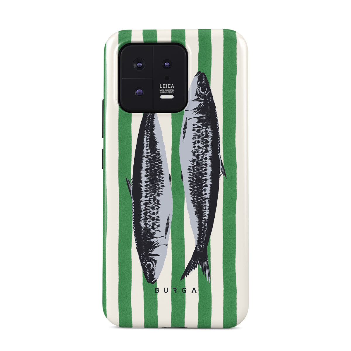 Kenmerken van dit design: Sardines, groene strepen, oceaanmotieven.