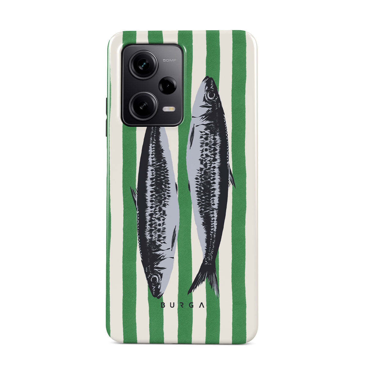 Kenmerken van dit design: Sardines, groene strepen, oceaanmotieven.