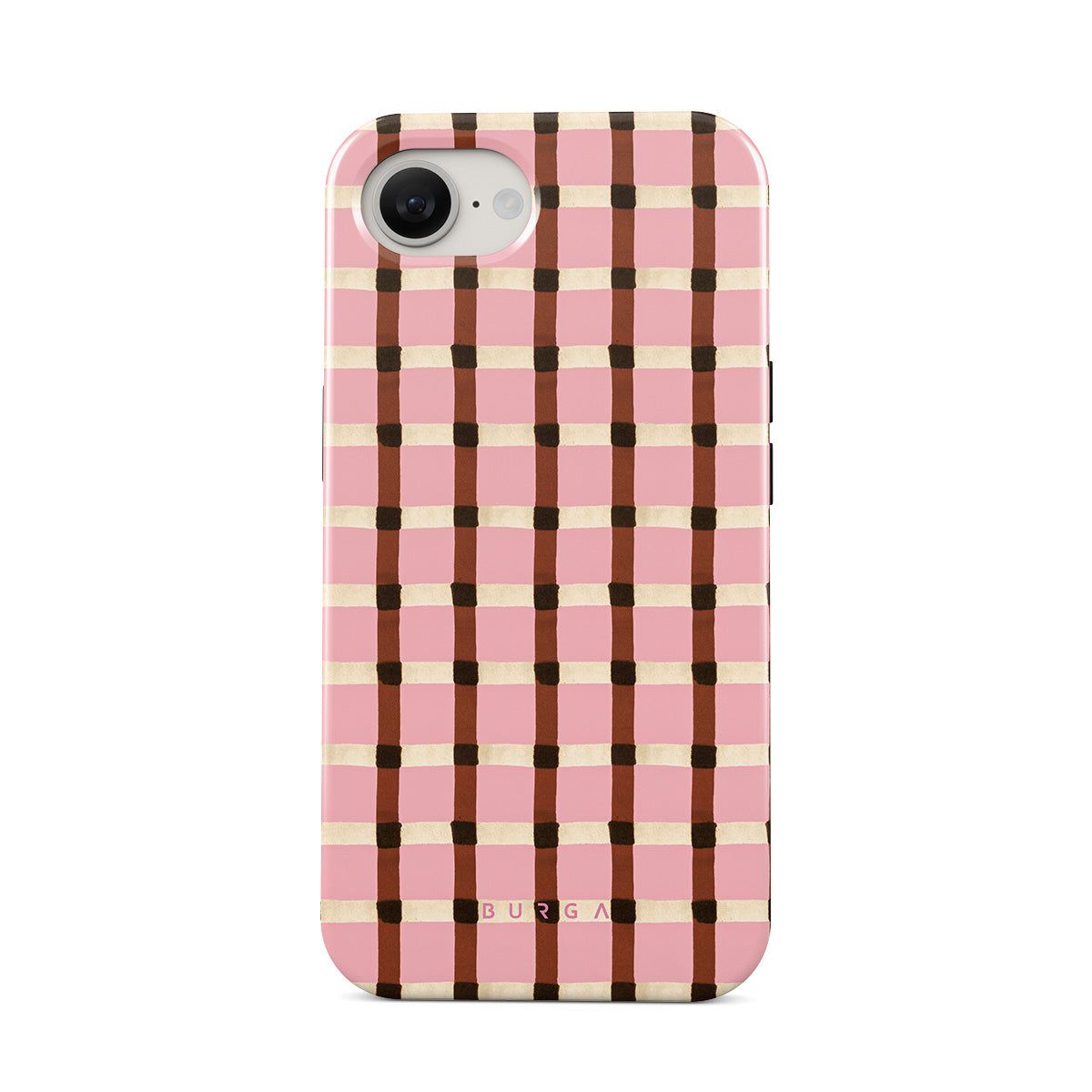 Kenmerken van dit design: een roze en bruin geruit patroon, een gingham-patroon