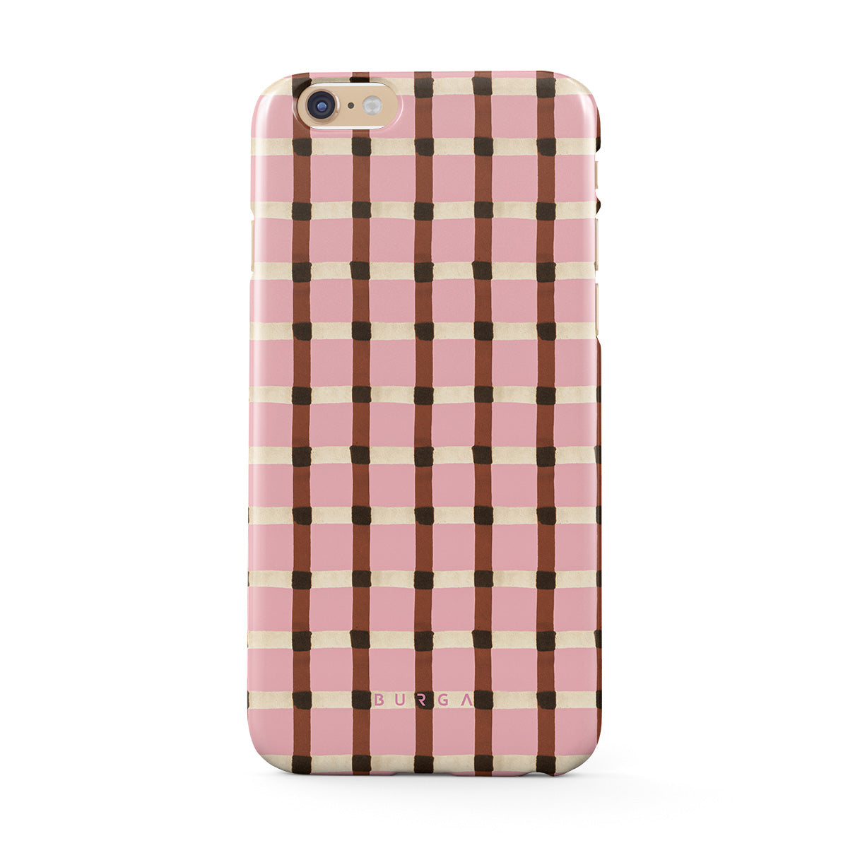 Kenmerken van dit design: een roze en bruin geruit patroon, een gingham-patroon