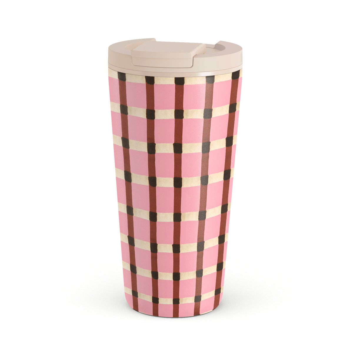 Kenmerken van dit design: een roze en bruin geruit patroon, een gingham-patroon