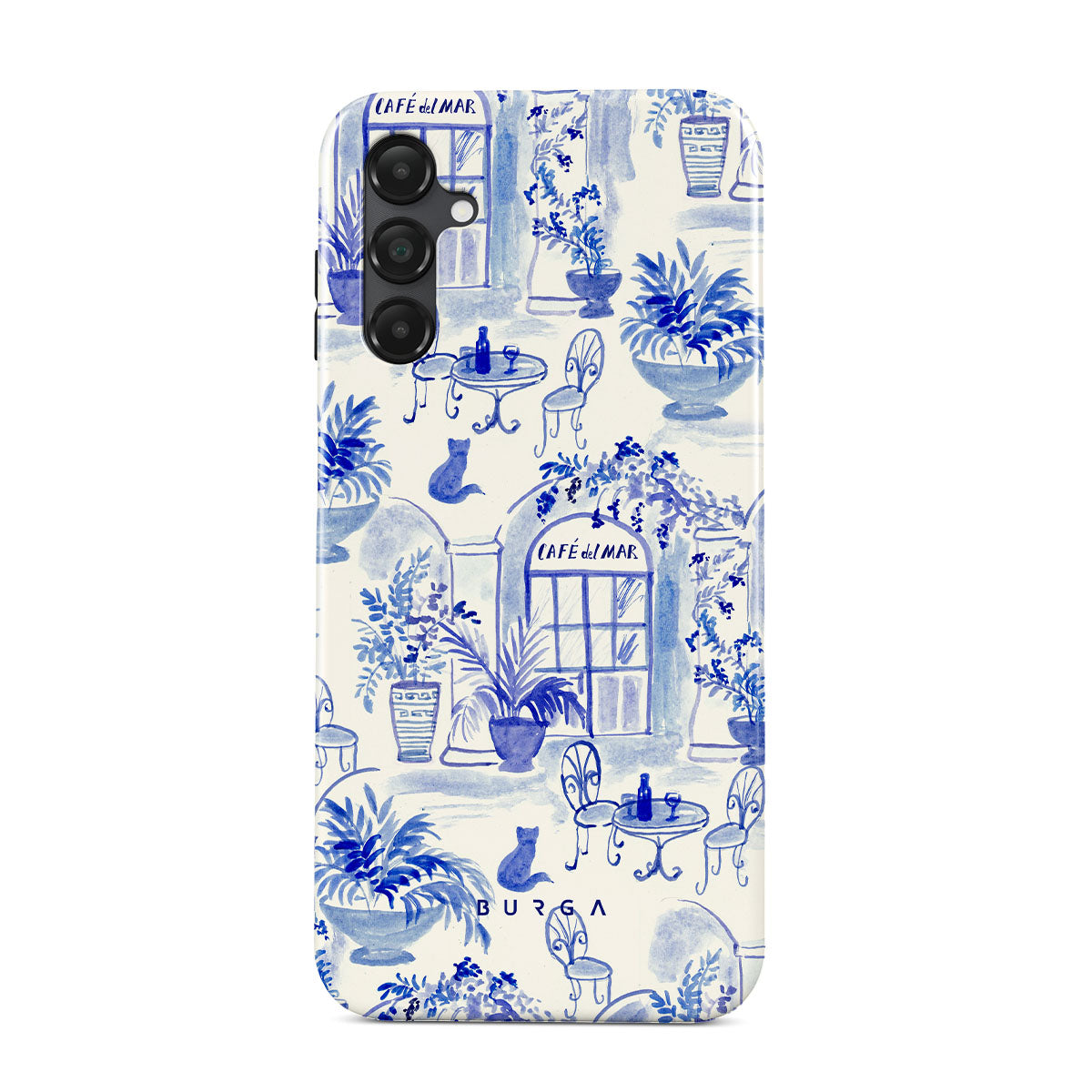 Kenmerken van dit design: Zachte blauwtinten, kustmotieven, café-elementen, minimalistische stijl, retro patronen, mediterrane patronen.
