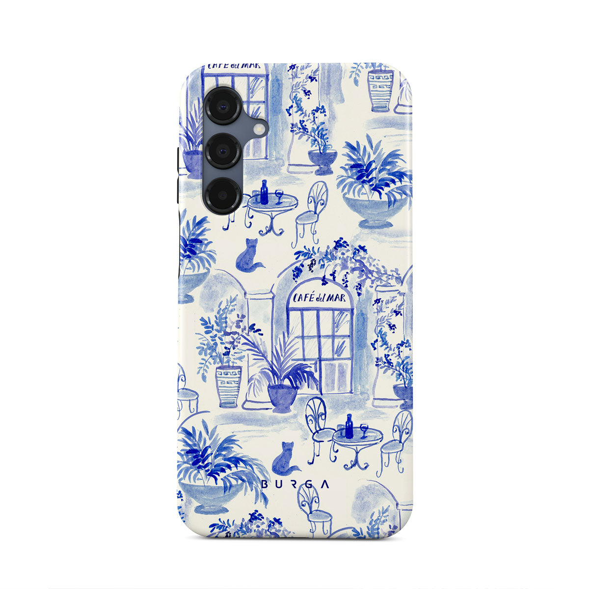 Kenmerken van dit design: Zachte blauwtinten, kustmotieven, café-elementen, minimalistische stijl, retro patronen, mediterrane patronen.