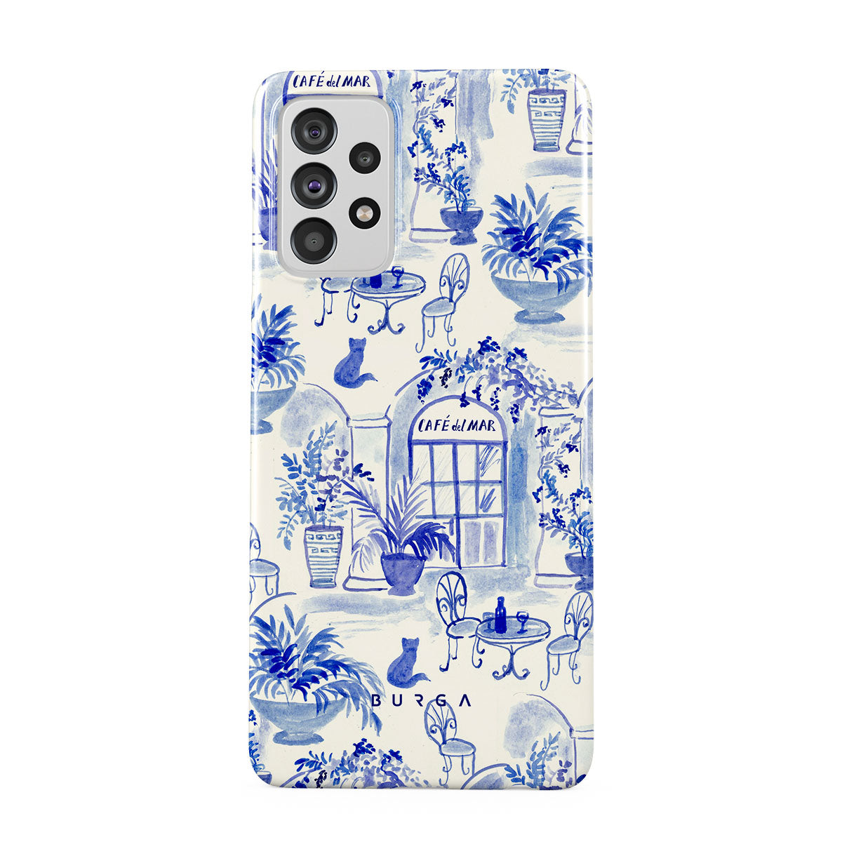 Kenmerken van dit design: Zachte blauwtinten, kustmotieven, café-elementen, minimalistische stijl, retro patronen, mediterrane patronen.
