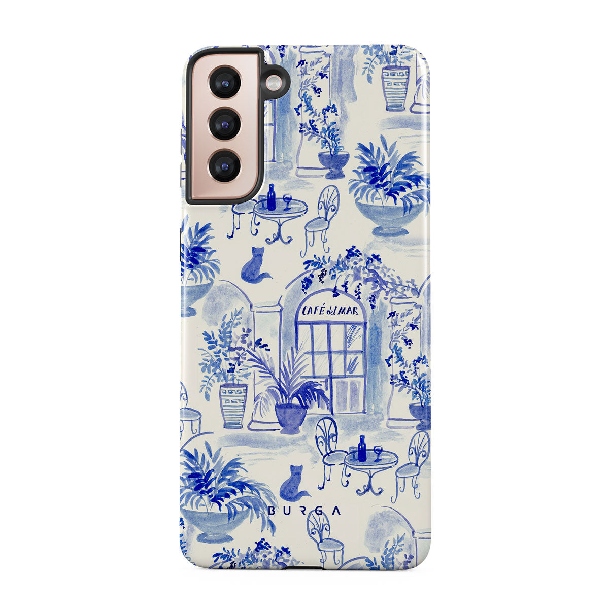 Kenmerken van dit design: Zachte blauwtinten, kustmotieven, café-elementen, minimalistische stijl, retro patronen, mediterrane patronen.