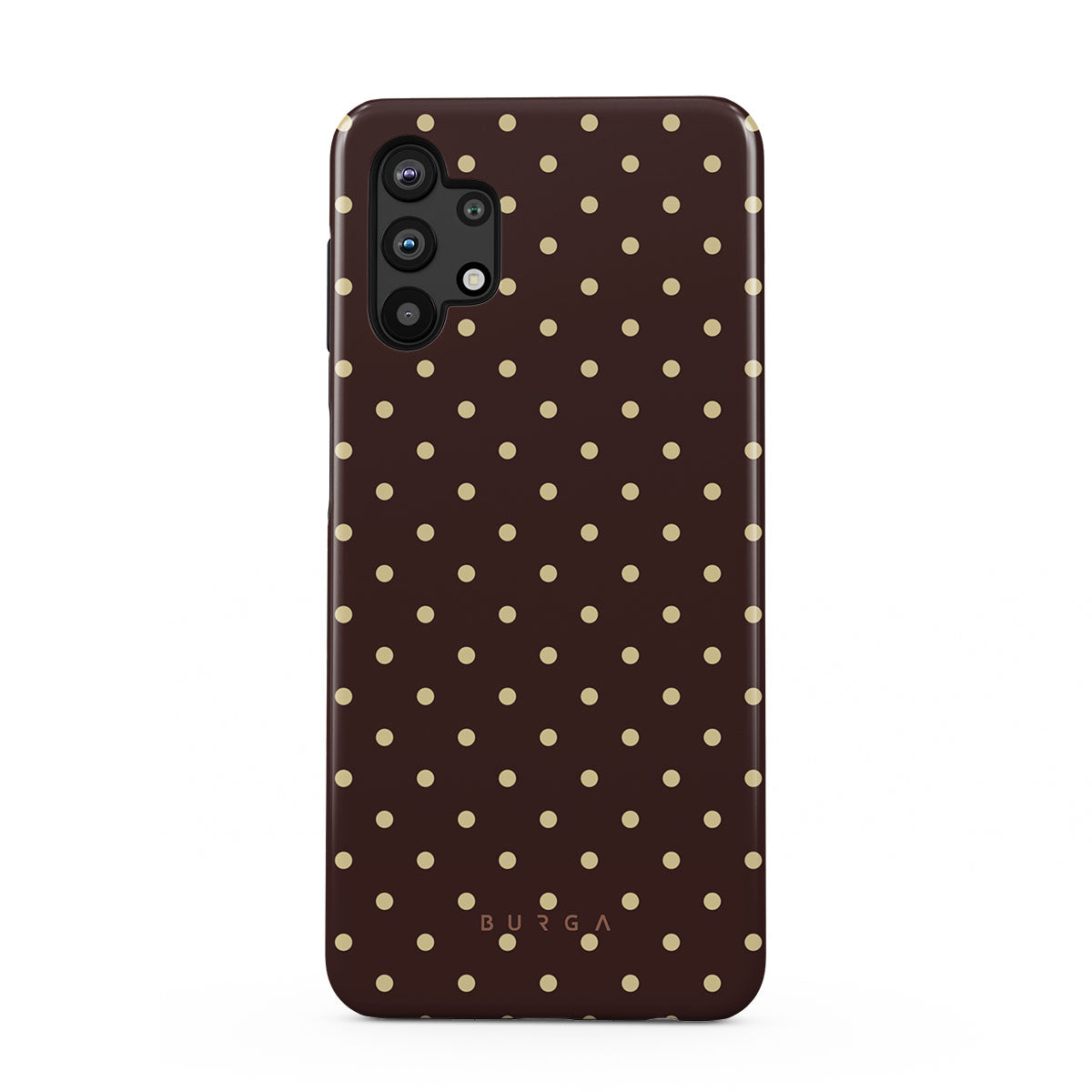 Kenmerken van dit design: bruine achtergrond, beige stippen