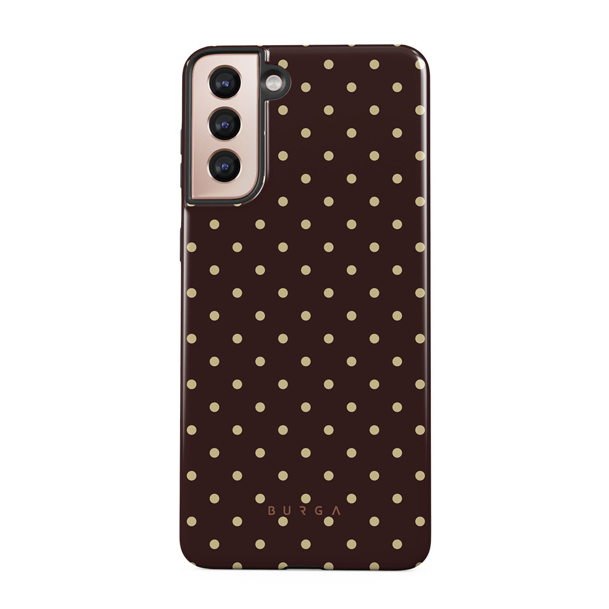 Kenmerken van dit design: bruine achtergrond, beige stippen