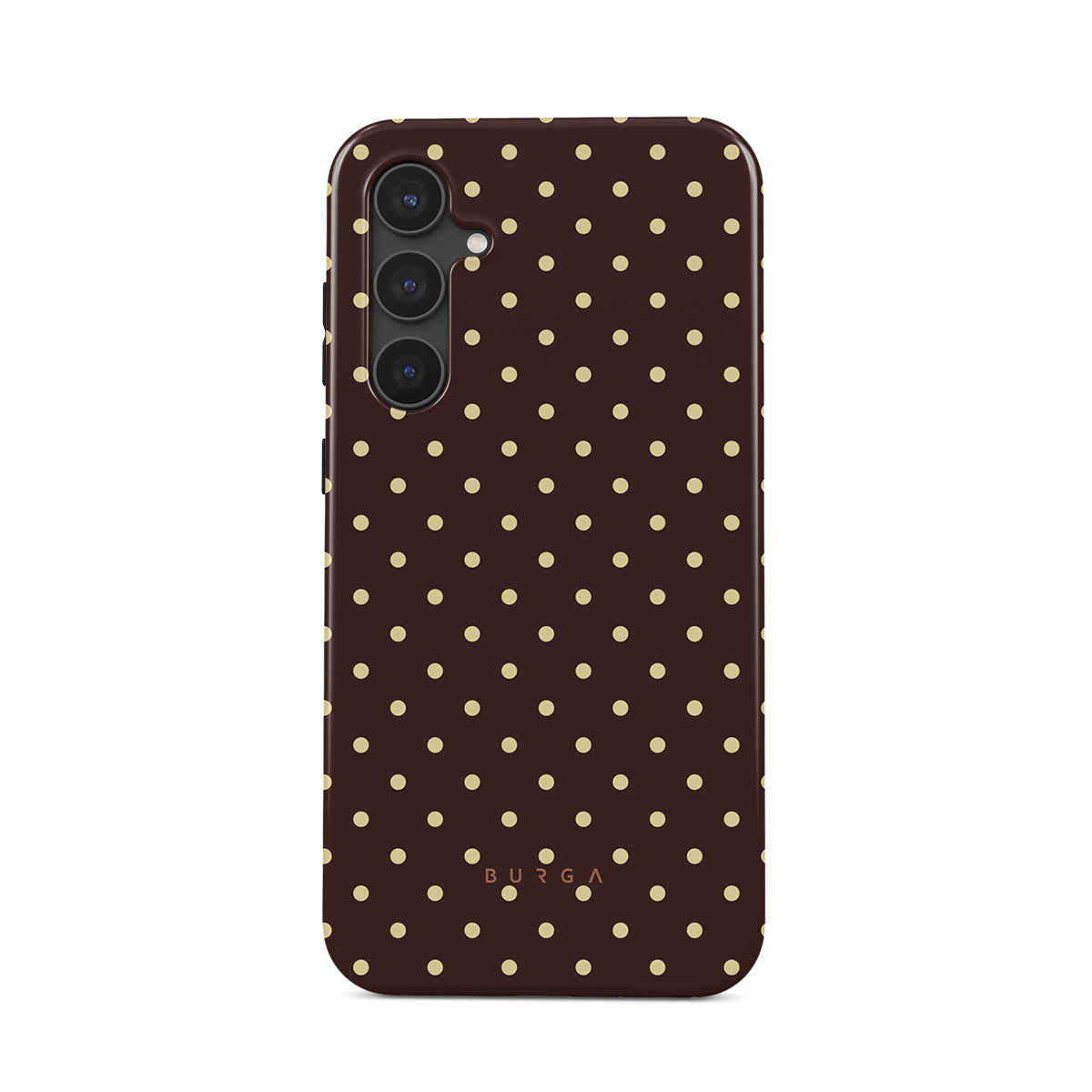 Kenmerken van dit design: bruine achtergrond, beige stippen