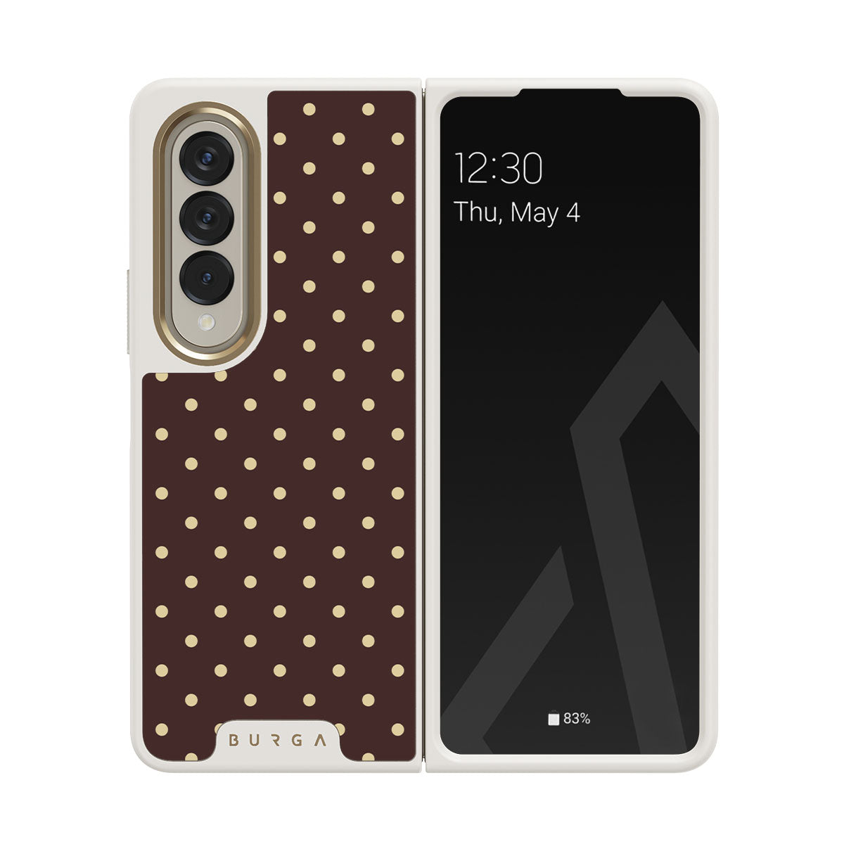 Kenmerken van dit design: bruine achtergrond, beige stippen