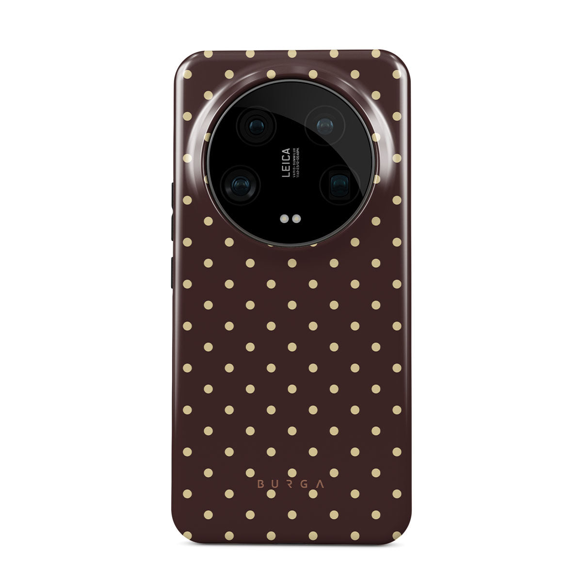 Kenmerken van dit design: bruine achtergrond, beige stippen