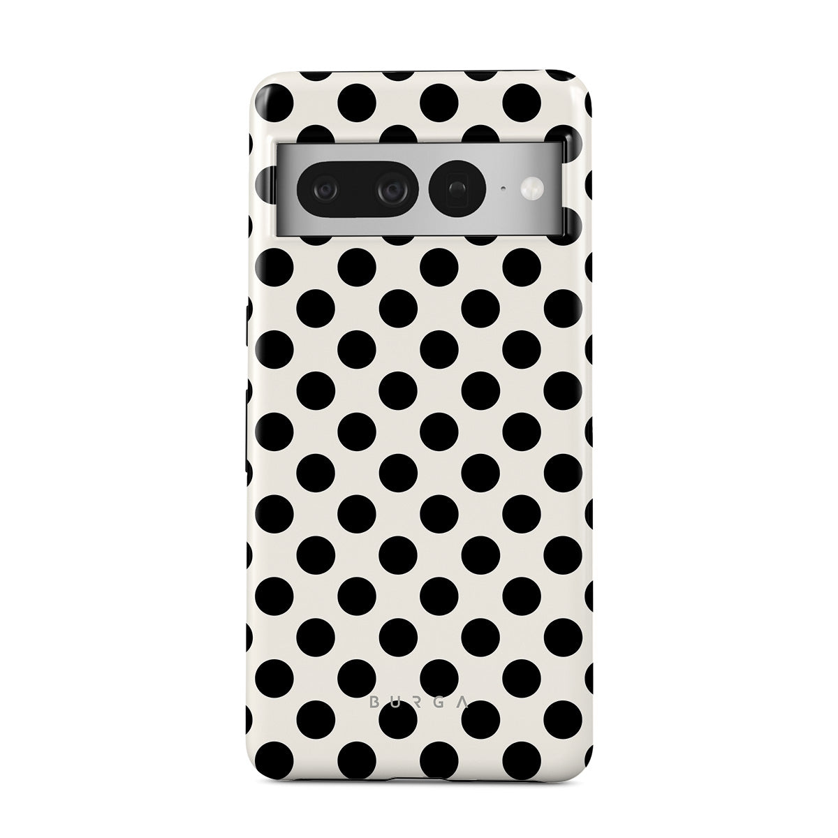 Kenmerken van dit design: zwarte stippen op een stralend witte achtergrond.