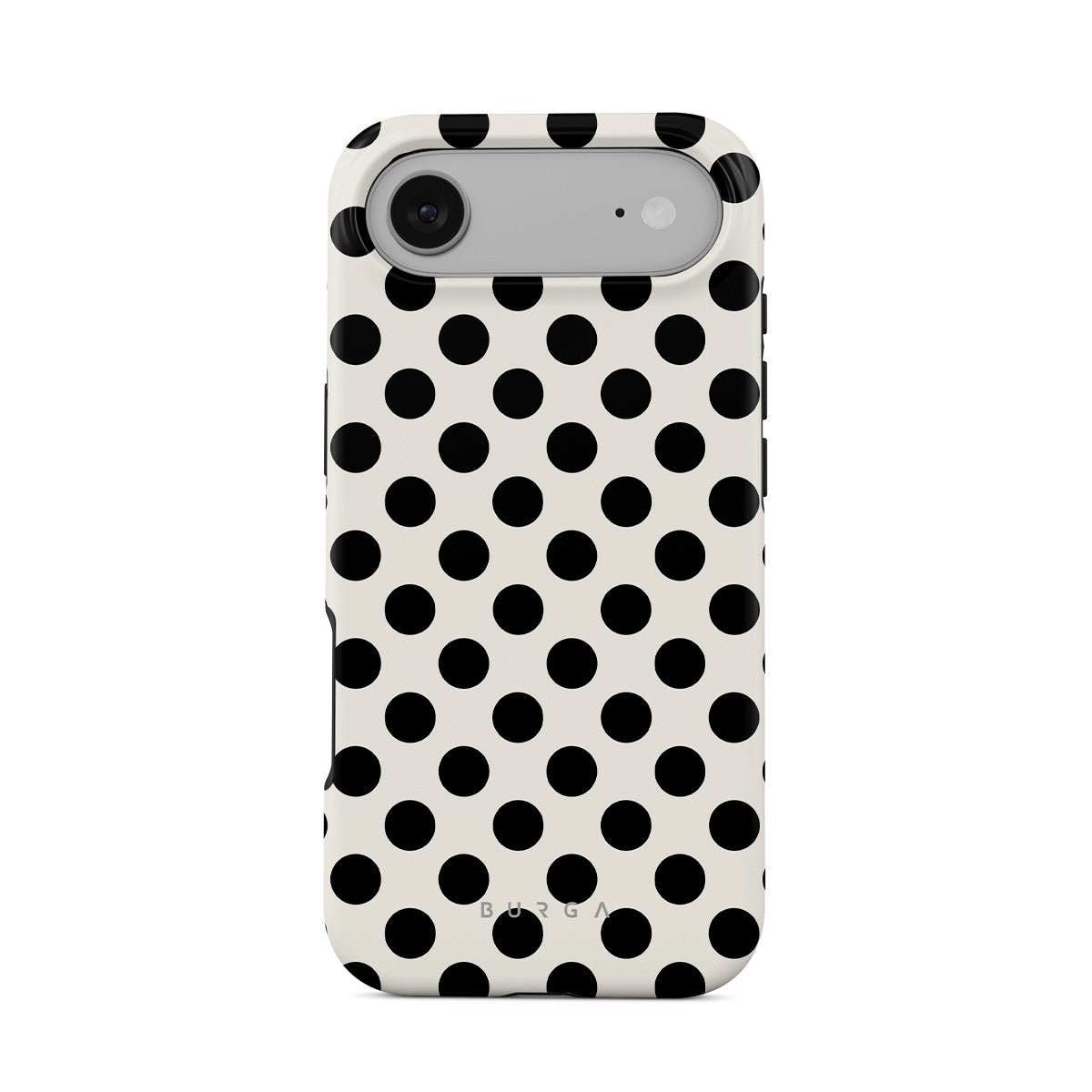 Kenmerken van dit design: zwarte stippen op een stralend witte achtergrond.