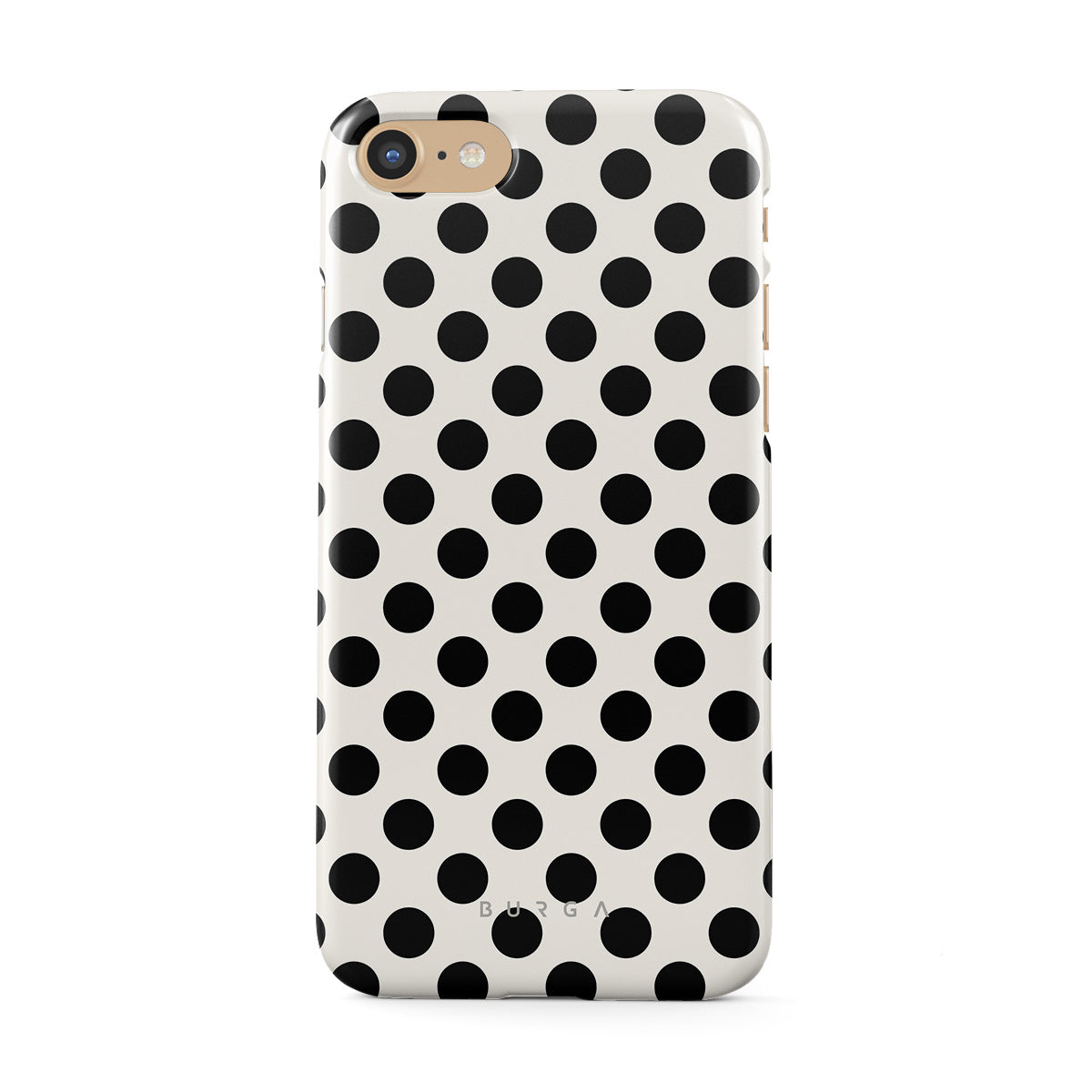 Kenmerken van dit design: zwarte stippen op een stralend witte achtergrond.