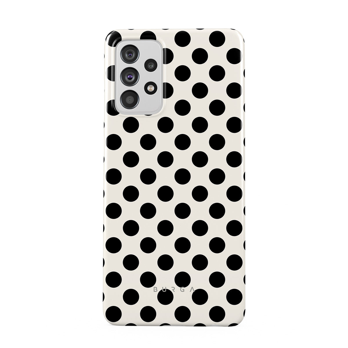 Kenmerken van dit design: zwarte stippen op een stralend witte achtergrond.