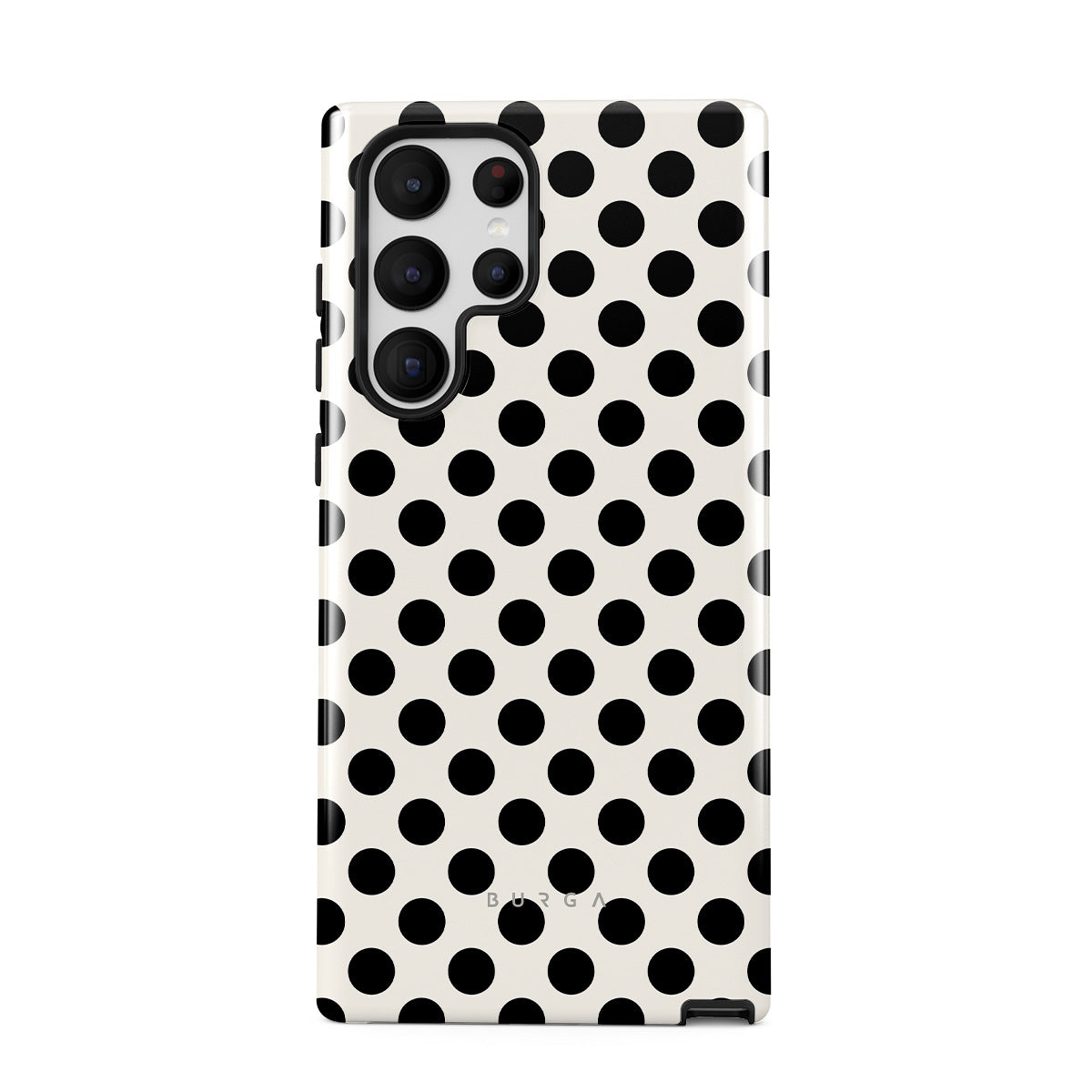 Kenmerken van dit design: zwarte stippen op een stralend witte achtergrond.