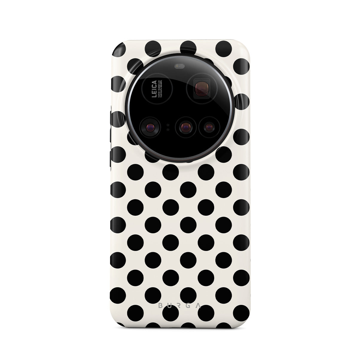 Kenmerken van dit design: zwarte stippen op een stralend witte achtergrond.