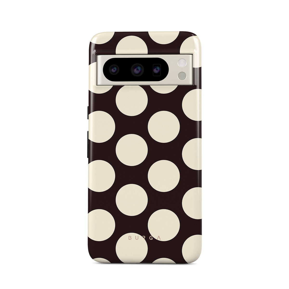 Kenmerken van dit design: grote crèmekleurige stippen op een donkere achtergrond.