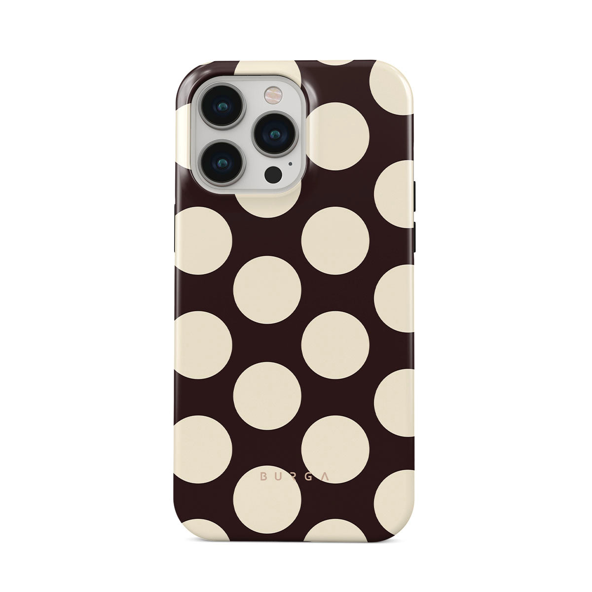 Kenmerken van dit design: grote crèmekleurige stippen op een donkere achtergrond.