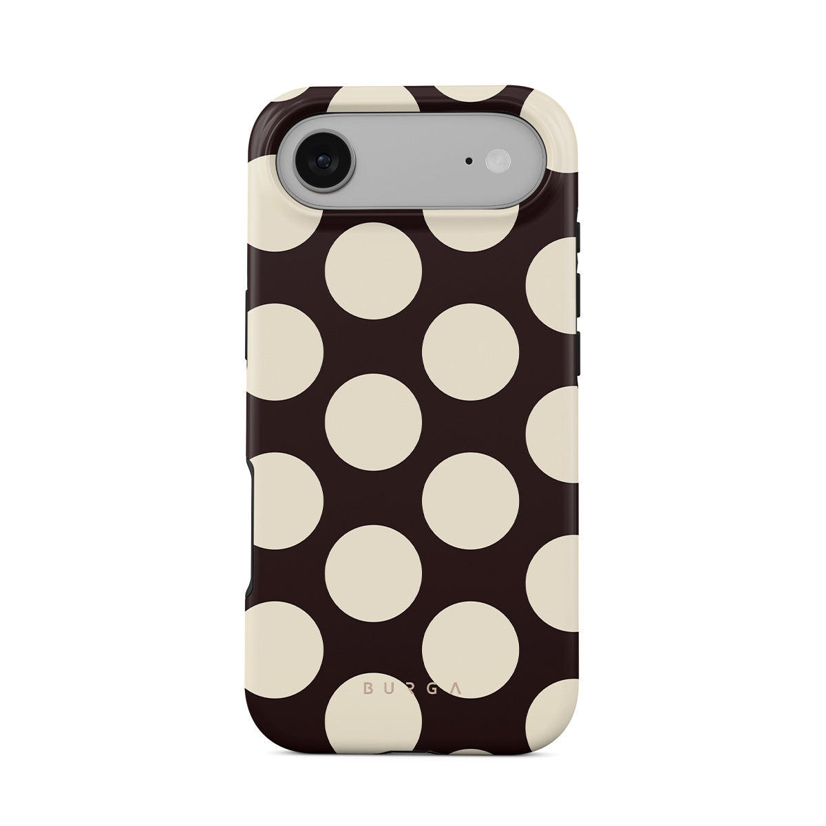 Kenmerken van dit design: grote crèmekleurige stippen op een donkere achtergrond.